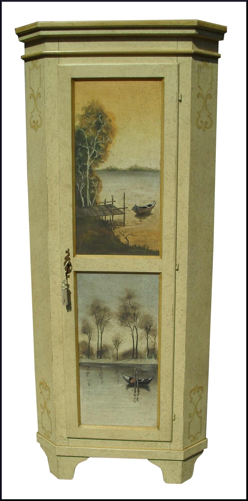 Scopri la nostra angoliera cantonale artigianale, un pezzo unico realizzato con maestria e dipinto a mano con affascinanti paesaggi lacustri. Ogni dettagliato dipinto racconta una storia, portando la bellezza della natura direttamente nel tuo soggiorno. Questa angoliera non è solo un mobile funzionale, ma anche un'opera d'arte che arricchisce l'ambiente circostante. Realizzata da esperti artigiani, l'angoliera è costruita con materiali di alta qualità, garantendo durabilità e resistenza nel tempo.