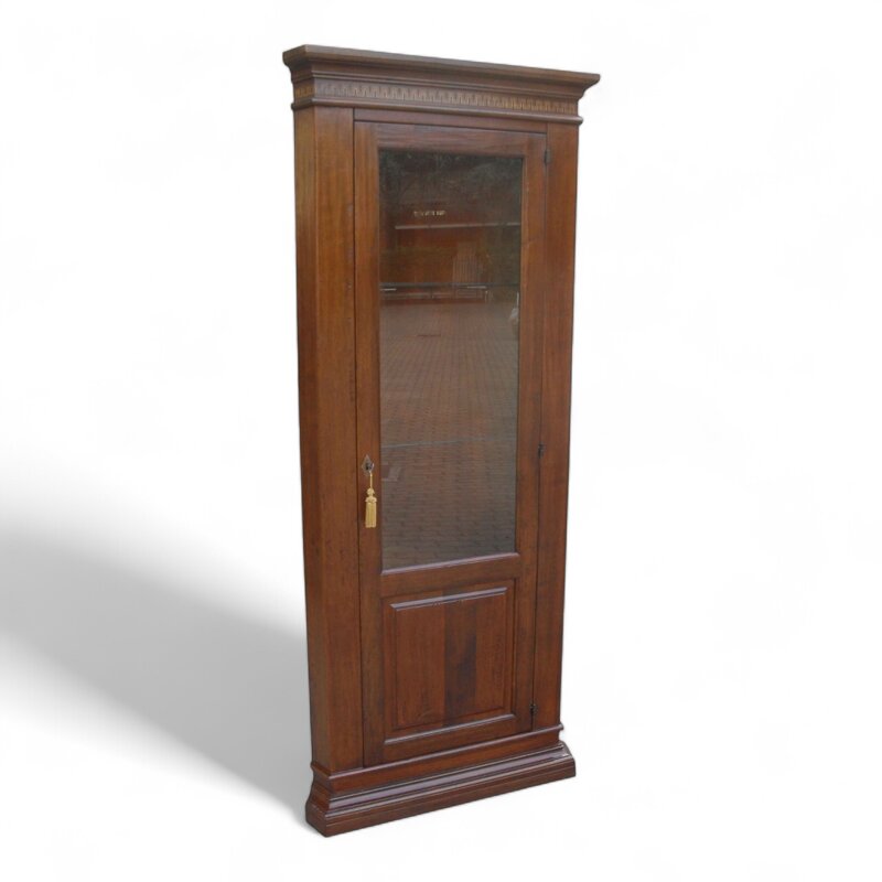 Questa elegante angoliera in legno massello di noce è un pezzo di arredamento classico che aggiungerà un tocco di raffinatezza a qualsiasi ambiente. Con la sua anta in vetro, potrai esporre i tuoi oggetti preziosi o semplicemente godere della luce naturale che filtra attraverso. La sua struttura solida e la finitura di alta qualità la rendono un investimento duraturo che valorizzerà la tua casa per anni a venire. Perfetta per angoli e spazi ristretti, questa angoliera cantonale è un'aggiunta funzionale e di stile al tuo arredamento.