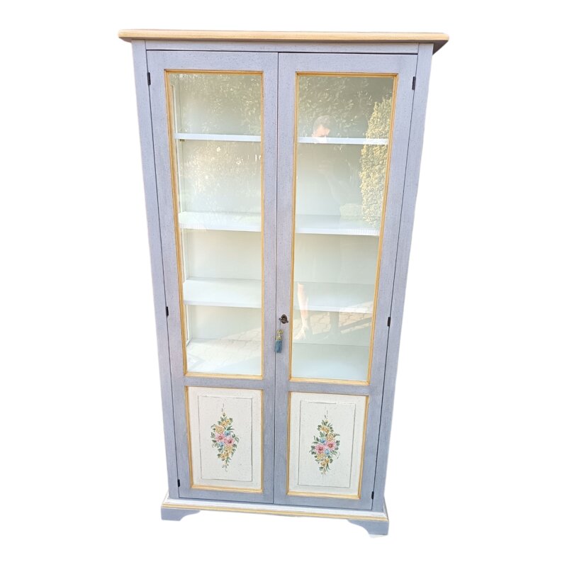 Questo piccola argentiera a due ante è un vero gioiello di artigianato. Dipinta e decorata a mano con splendidi motivi floreali e dettagli ornamentali, è un pezzo unico che aggiunge un tocco di eleganza e charme a qualsiasi ambiente. Le ante sono sapientemente decorate con fiori e dettagli in rilievo che creano un effetto tridimensionale, mentre la struttura in legno massello è stata dipinta di un delicato azzurro cielo. Un mobile di grande pregio, ideale per conservare oggettistica o per riporre libri o semplicemente per abbellire la casa con un tocco di raffinatezza senza tempo. Dimensioni e materiali devono essere verificati prima dell'acquisto.