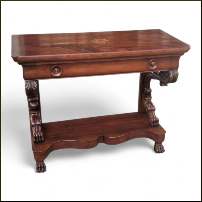 Questa elegante consolle Luigi Filippo restaurata è un pezzo d'antiquariato dal fascino intramontabile. Realizzata in legno massiccio di alta qualità, presenta una finitura lucida che mette in risalto le sue linee sinuose e le elaborate decorazioni intagliate a mano. Le gambe scolpite con dettagli floreali e le forme arrotondate conferiscono un tocco di raffinatezza senza tempo. Questa consolle è ideale per arricchire con classe e stile qualsiasi ambiente, sia esso un ingresso, un salotto o una sala da pranzo. Le sue dimensioni compatte la rendono adatta anche per spazi più piccoli. Un vero gioiello di artigianato che regala un'atmosfera elegante e accogliente.