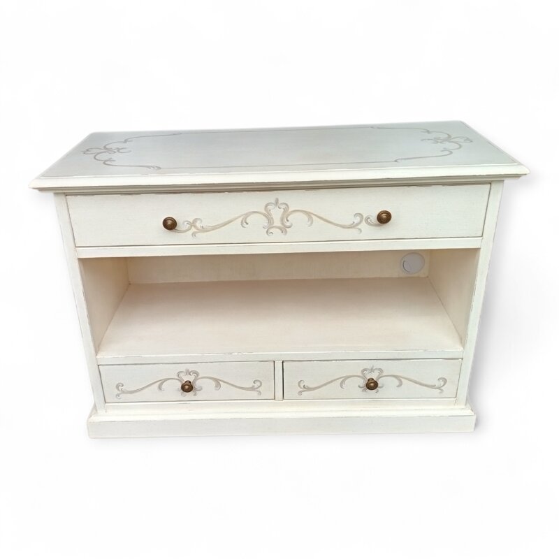 Questa elegante cassapanca porta tv provenzale è un'opera d'arte artigianale. I cassetti dipinti a mano con motivi floreali delicati e linee sinuose creano un'atmosfera affascinante di charme rustico. Il piano superiore decorato con un raffinato ornato serve da appoggio per il vostro televisore . Realizzata con legno di alta qualità, questa cassapanca è un pezzo da collezione che aggiungerà un tocco di raffinatezza alla tua casa. Le dimensioni sono contenute per arredare ogni angolo . Un acquisto che affascinerà gli amanti dell'artigianato provenzale per anni a venire.L'articolo ti interessa ma vorresti spendere un po' meno. Compila il