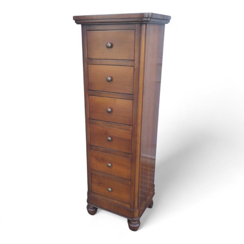 Questo cassettiera in stile 800 è realizzata in noce massello di alta qualità, conferendogli un aspetto elegante e robusto. Il design classico con piedi torniti e maniglie in ottone anticato aggiungono un tocco di raffinatezza. Con i suoi ampi cassetti, offre un'eccellente capacità di archiviazione per organizzare i tuoi oggetti personali. Perfetto per arredare la camera da letto o il soggiorno con un'atmosfera tradizionale, questo comò è un investimento duraturo che valorizzerà l'estetica della tua casa per anni a venire.