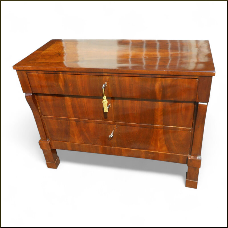 Questo cassettone in stile Impero del primo Ottocento lombardo è un pezzo di arredamento di grande fascino. Realizzato in legno massiccio di pregiata qualità, presenta una finitura lucida che mette in risalto le venature naturali del legno. La struttura robusta e le linee eleganti lo rendono un complemento d'arredo perfetto per un ambiente classico e raffinato. Dotato di ampi cassetti , offre un'ottima capacità di contenimento per riporre con ordine oggetti e indumenti. Un mobile di grande valore estetico e funzionale, ideale per arricchire con stile la tua casa.