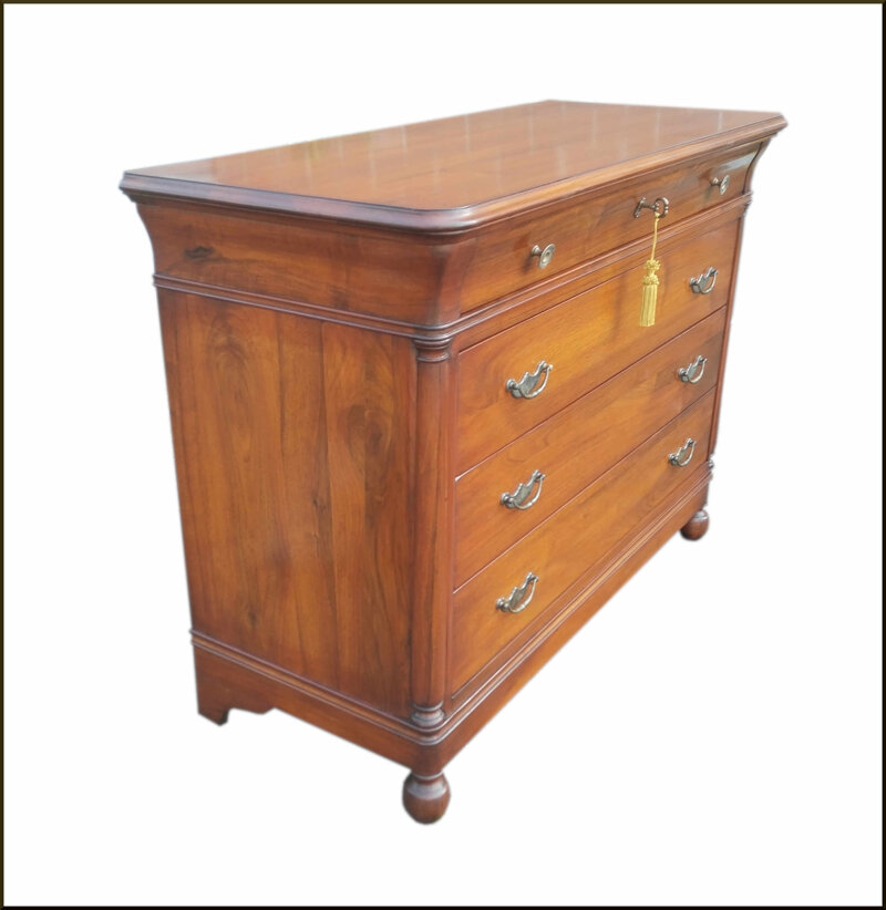 Questo comò cassettone in stile 800 è realizzato in noce massello di alta qualità, conferendogli un aspetto elegante e robusto. Il design classico con piedi torniti e maniglie in ottone anticato aggiungono un tocco di raffinatezza. Con i suoi ampi cassetti, offre un'eccellente capacità di archiviazione per organizzare i tuoi oggetti personali. Perfetto per arredare la camera da letto o il soggiorno con un'atmosfera tradizionale, questo comò è un investimento duraturo che valorizzerà l'estetica della tua casa per anni a venire.