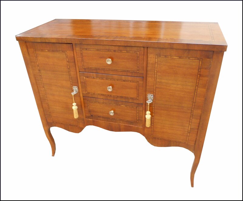 Questa credenza classica lastronata due porte con base sagomata è un pezzo di arredamento elegante e funzionale. La struttura solida in legno massiccio e la finitura levigata conferiscono un aspetto raffinato che si adatta perfettamente a qualsiasi ambiente, dall'ufficio alla sala da pranzo. Le ante offrono ampio spazio per riporre oggetti e documenti, mentre la base sagomata aggiunge un tocco di stile unico. Con le sue dimensioni generose e il design intramontabile, questa credenza diventerà un elemento di spicco nella tua casa, unendo praticità e bellezza. Realizzata con cura artigianale, è un investimento duraturo che valorizzerà qualsiasi stanza con la sua presenza imponente e raffinata.