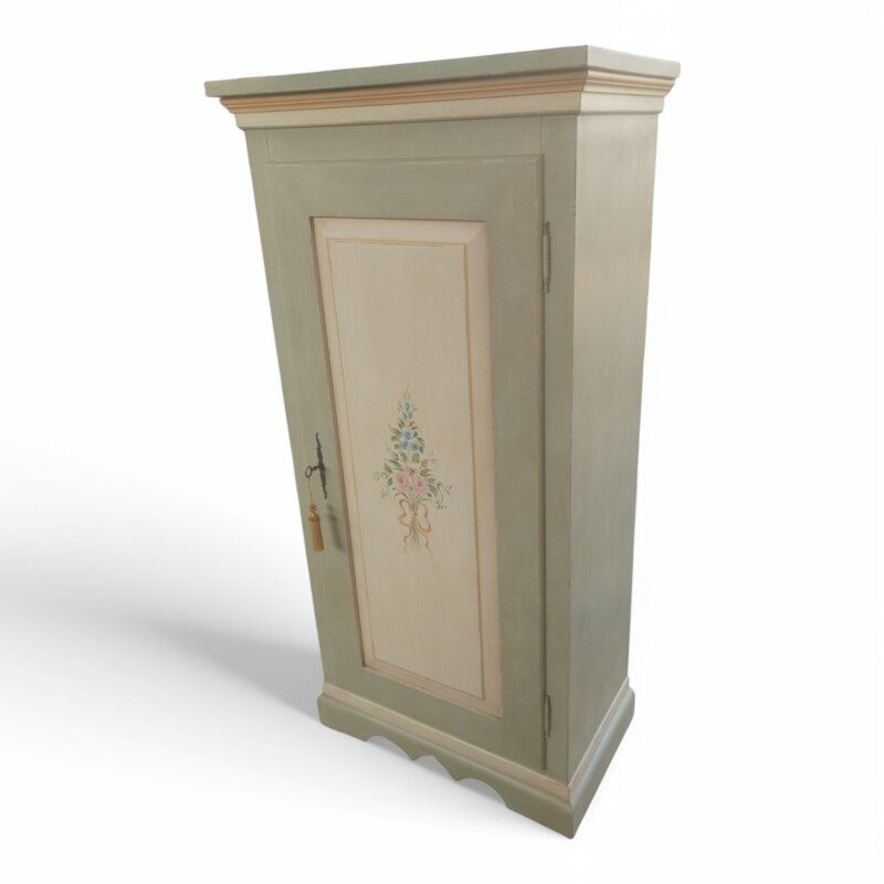 Questa dispensa provenzale laccata a mano è un pezzo di arredamento elegante e raffinato. Le sue linee e i dettagli decorativi gli conferiscono un aspetto classico e romantico. Con la sua anta decorata con motivi floreali e i ripiani regolabili offre ampio spazio per riporre i vostri accessori . La finitura laccata a mano in un delicato color verde salvia rende questo armadietto un elemento d'arredo versatile che si adatta perfettamente a qualsiasi ambiente, dalla cucina al soggiorno. Le dimensioni compatte lo rendono pratico e funzionale, mentre il design artigianale gli conferisce un tocco di eleganza senza tempo. Un vero gioiello di stile provenzale per la vostra casa.