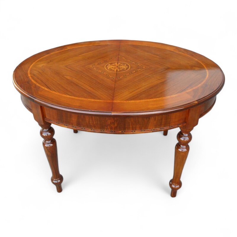 Questo tavolo ovale apribile è un vero gioiello di artigianato classico. La sua struttura in legno massiccio intarsiato a mano mostra un livello di maestria artigianale ineguagliabile. Le linee eleganti e le gambe tornite con dettagli scolpiti aggiungono un tocco di raffinatezza senza tempo. Quando chiuso, questo tavolo compatto si adatta perfettamente a qualsiasi ambiente, ma può essere aperto per rivelare un'ampia superficie per intrattenere gli ospiti o cenare in famiglia. Un pezzo da collezione che abbellirà qualsiasi casa con il suo fascino senza tempo.