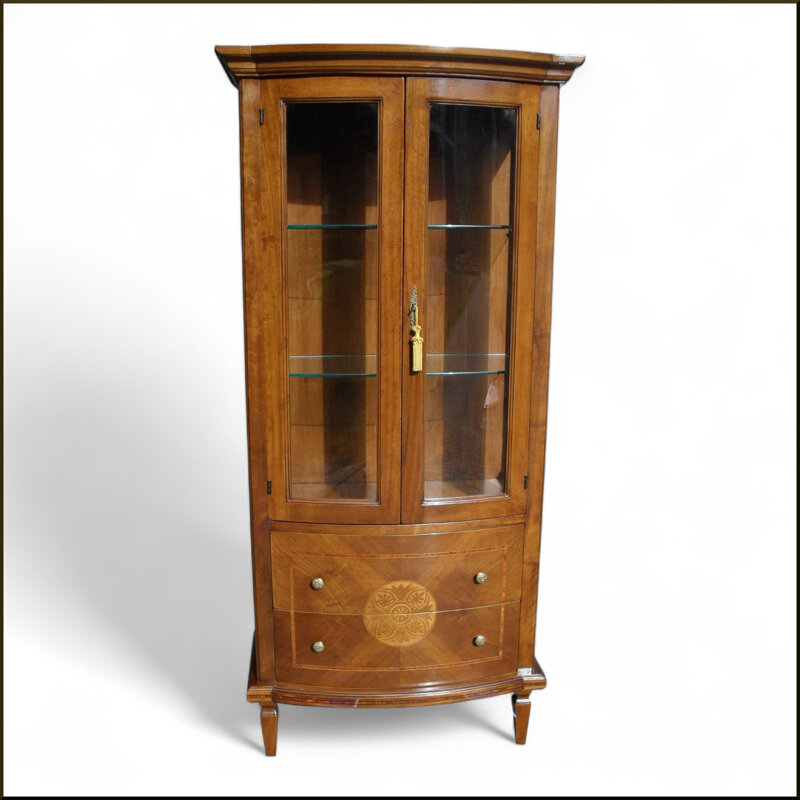 Questa elegante vetrinetta argentiera in legno massello incarna la raffinatezza dell'artigianato italiano. Le ante in vetro permettono di esporre con orgoglio i tuoi oggetti di valore, mentre i cassetti inferiori offrono un'ulteriore area di archiviazione. Gli intarsi decorativi e le linee curve conferiscono un tocco di classe senza tempo a questo mobile, che si adatterà perfettamente a qualsiasi ambiente, dall'ingresso alla sala da pranzo. Con le sue dimensioni compatte ma generose, è un'aggiunta funzionale ed elegante per la tua casa. Realizzata con cura artigianale, questa vetrinetta argentiera diventerà un pezzo di arredamento da tramandare di generazione in generazione.