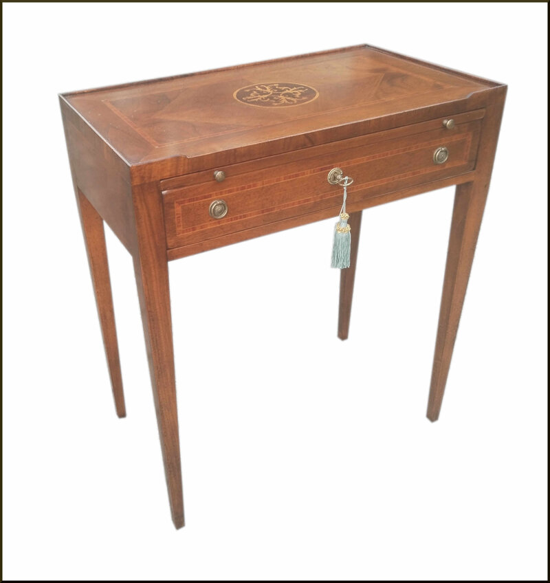 Questo scrittoio in noce è un pezzo di arredamento elegante e funzionale. Il piano d'appoggio estraibile offre uno spazio di lavoro comodo per scrivere o utilizzare il computer portatile. Il cassetto fornisce un'area di archiviazione aggiuntiva per tenere in ordine gli oggetti. La struttura in legno massiccio è robusta e durevole, mentre il design classico con dettagli intarsiati aggiunge un tocco di raffinatezza. Questo scrittoio è perfetto per arredare uno studio o un ufficio a casa con stile e praticità. Le dimensioni compatte lo rendono adatto anche per spazi più piccoli. Un'aggiunta elegante e funzionale per qualsiasi ambiente di lavoro.