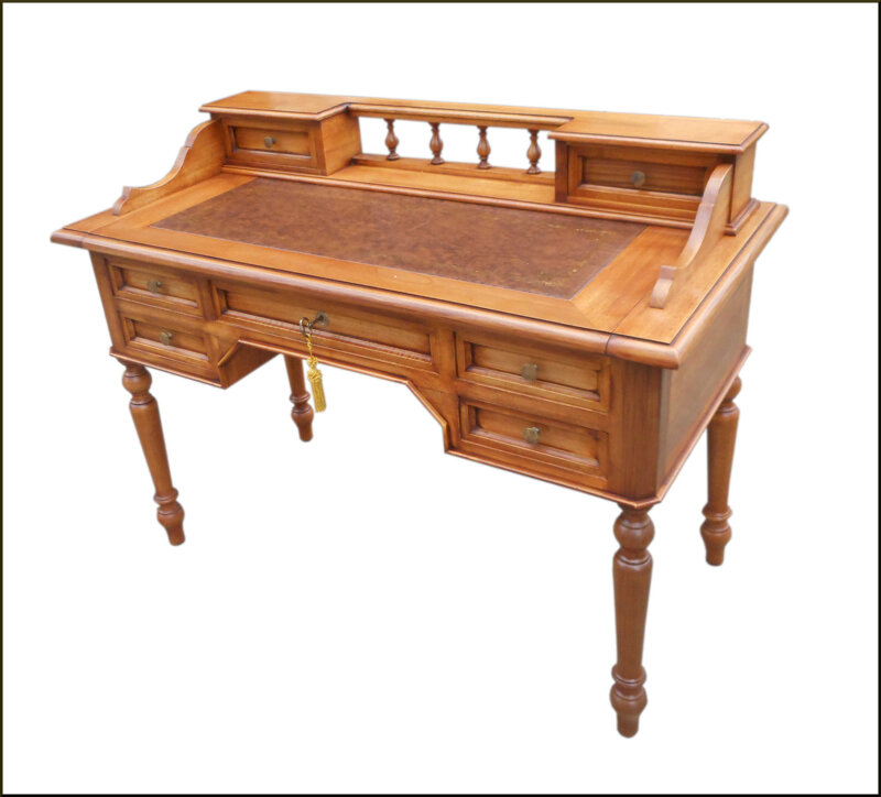Questo scrittoio in stile 800 è un'opera d'arte in legno di noce massello. Le sue linee eleganti e le gambe tornite gli conferiscono un'aria aristocratica che si adatta perfettamente a uno studio o una biblioteca. Numerosi cassetti e scomparti offrono ampio spazio per riporre documenti e oggetti da scrivania. La superficie di lavoro ampia e liscia è ideale per scrivere o lavorare comodamente. Un pezzo di arredamento di qualità artigianale che aggiungerà un tocco di classe a qualsiasi ambiente.