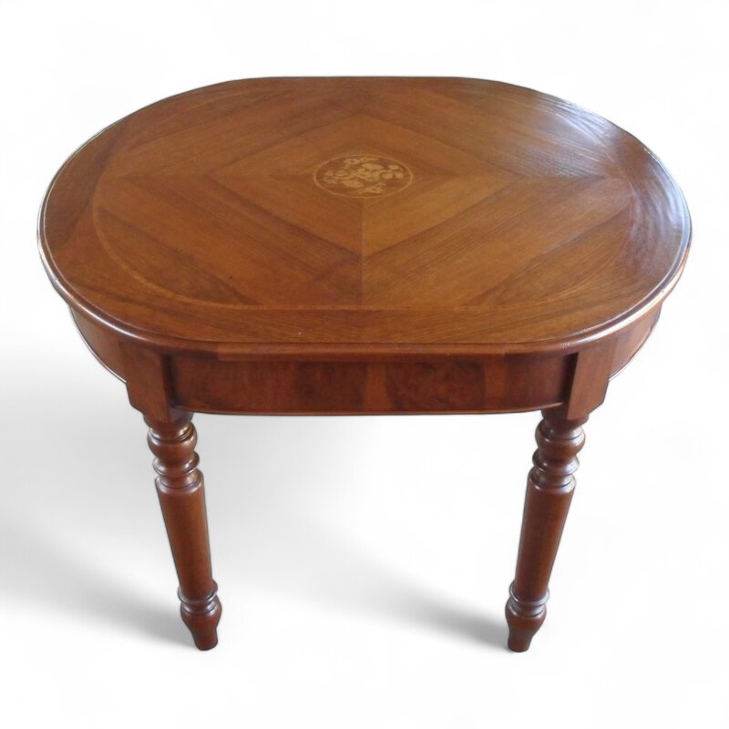 Questo tavolo classico ovale fisso è un'opera artigianale di grande qualità. Il piano del tavolo, intarsiato con motivi eleganti, è realizzato in legno massiccio di noce e presenta una finitura lucida che esalta la bellezza delle venature naturali del legno. Le gambe tornite conferiscono al tavolo un aspetto tradizionale e raffinato. Perfetto per arredare sale da pranzo o soggiorni di stile classico, questo tavolo ovale fisso è un pezzo di arredamento durevole e di pregevole fattura che aggiungerà un tocco di eleganza al tuo ambiente domestico.