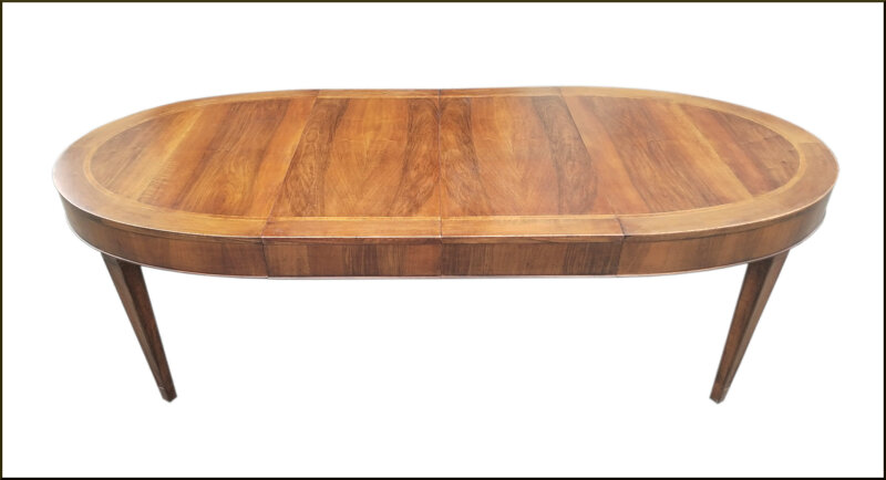 Questo tavolo ovale allungabile è un'aggiunta elegante e funzionale a qualsiasi sala da pranzo. Il piano in legno massiccio di qualità superiore presenta una finitura lucida che valorizza la bellezza naturale delle venature del legno. Le prolunghe interne consentono di allungare facilmente il tavolo per ospitare più commensali durante le occasioni speciali. Il design senza sbordo crea un aspetto pulito e moderno. Con le sue linee semplici e la costruzione robusta, questo tavolo ovale allungabile offre un'estetica raffinata e una funzionalità duratura.