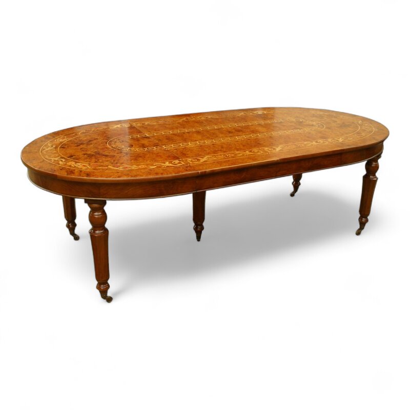 Questo tavolo ovale inglese apribile con manovella è un pezzo di arredamento di alta qualità e dal design elegante. La superficie in legno massiccio presenta un'incisione decorativa di grande effetto. Le gambe tornite e i dettagli intarsiati aggiungono un tocco di raffinatezza. Apribile tramite una comoda manovella, questo tavolo ovale può adattarsi alle tue esigenze di spazio. Un'aggiunta di classe per la tua sala da pranzo o soggiorno che ti permetterà di intrattenere gli ospiti con stile.