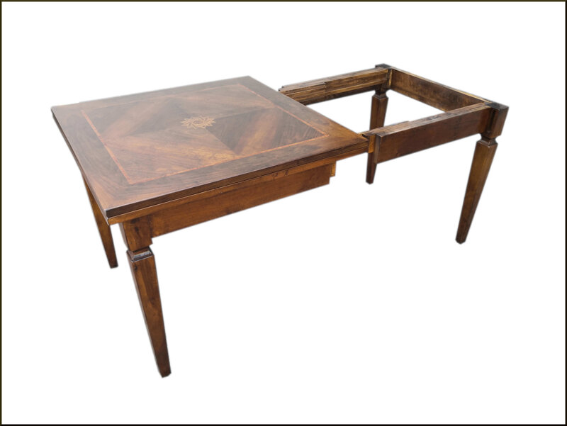 Scopri il nostro tavolo quadrato classico apribile a libro, la soluzione perfetta per chi cerca un elemento di design elegante e funzionale. Questo tavolo è realizzato con un piano intarsiato di alta qualità, che aggiunge un tocco di raffinatezza a qualsiasi ambiente. La sua struttura robusta garantisce una lunga durata nel tempo, mentre il meccanismo apribile consente di ottimizzare lo spazio in base alle esigenze. Può essere facilmente ampliato per ospitare più persone, rendendolo ideale per cene e riunioni di famiglia. Con il suo stile intramontabile, il nostro tavolo quadrato si integra perfettamente in salotti, sale da pranzo e cucine, offrendo un tocco di classe a qualsiasi arredamento. Scegli il nostro tavolo apribile e trasforma il tuo spazio in un luogo accogliente e raffinato.