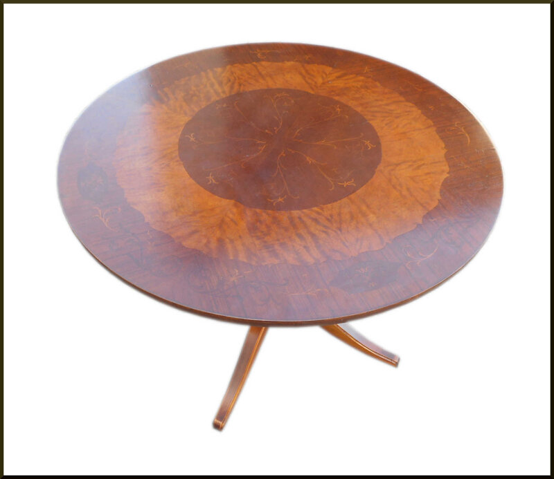 Questa tavola rotonda inglese di metà del 900 è un pezzo di arredamento unico e sofisticato. Il design elegante e ricercato, con le sue incisioni floreali sul piano circolare in legno, aggiunge un tocco di classe e raffinatezza a qualsiasi ambiente. Le linee sinuose e le proporzioni armoniose creano un'atmosfera accogliente e di charme. Questa tavola rotonda è un'opera d'arte funzionale, perfetta per arredare un salotto o una sala da pranzo con stile. Un vero gioiello di artigianato inglese che cattura l'essenza del design d'epoca.