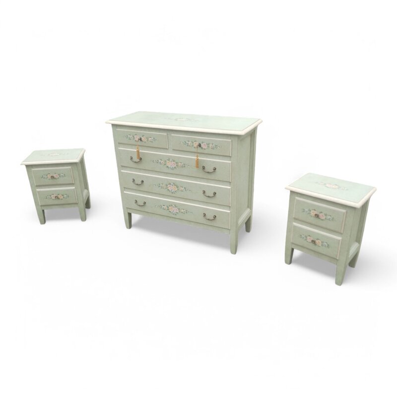 Questo elegante trittico cassettone e comodini provenzali è un'opera d'arte artigianale. I cassetti dipinti a mano con motivi floreali delicati e linee sinuose creano un'atmosfera affascinante di charme rustico. I cassetti offrono uno spazio aggiuntivo per riporre oggetti preziosi. Realizzato con legno di alta qualità, questo trittico è un pezzo da collezione che aggiungerà un tocco di raffinatezza alla tua casa. Le dimensioni sono perfette per una camera o una sala. Un acquisto che affascinerà gli amanti dell'artigianato provenzale per anni a venire.