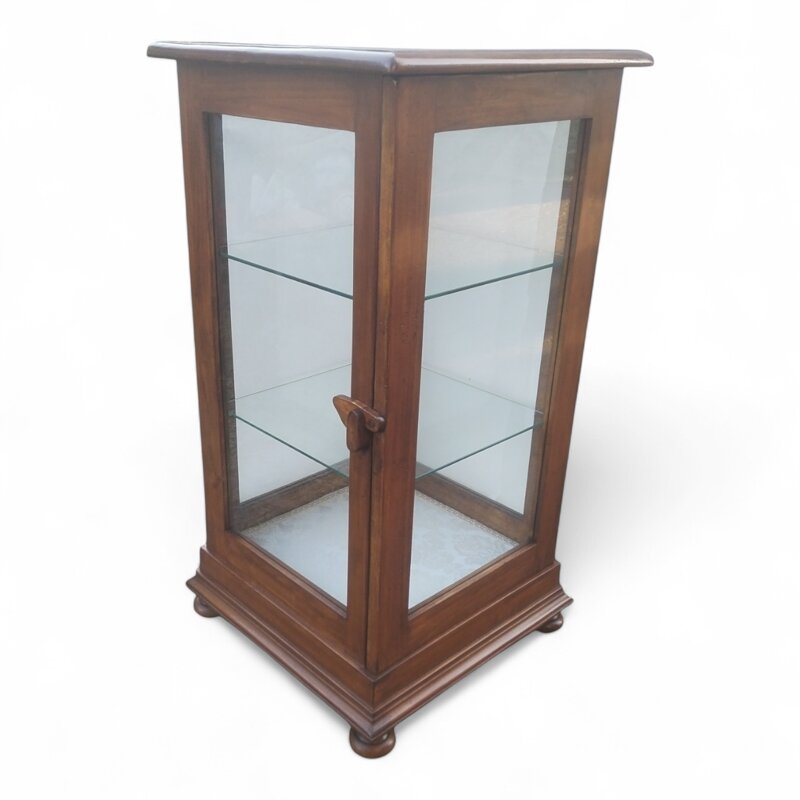 Questa elegante vetrina in intarsiata è un pezzo di artigianato di alta qualità. L'anta in vetro consente di esporre i tuoi oggetti preziosi in tutta sicurezza, mentre i dettagli intarsiati a mano aggiungono un tocco di raffinatezza. Le dimensioni compatte la rendono perfetta per qualsiasi ambiente, sia esso un salotto, una sala da pranzo o uno studio. Con i suoi ripiani in vetro e la struttura robusta, questa vetrina è un investimento duraturo che abbellirà la tua casa per anni a venire. Approfitta di questo gioiello di artigianato italiano e dai un tocco di classe al tuo arredamento.